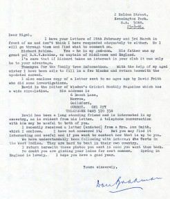 who was conducting personal research into Don Bradman's ancestry during the early 1990's. The archive comprises of 49 hand and type written letters from Bradman dating from July 1990 to February 1999. The correspondence refers to Ward's research connecting Bradman's ancestors to two small rural villages - Bradenham in Norfolk, and Withersfield in Suffolk. He had traced Bradman's ancestors back to the 16th century in Bradenham and then onto Withersfield in Suffolk. -
