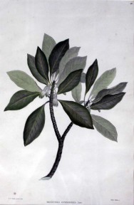 by Frederick Polydore Nodder (act. 1777-1795), Bruguiera Gymnorhiza, Eucalyptus Alba, Acacia Longifolia, Damapana Comferta, Phaseolus Mungo and Rhodomyrtus Macrocarpa, 46 x 30.5 cm each (6) in gold frames -
