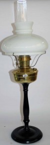 Lot Description:A Late Victorian Brass And Turned Wood Oil Lamp