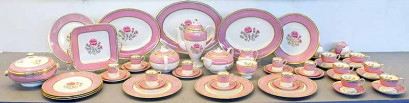 for eight. Decorated with pink roses within a pink and gilt border. -
