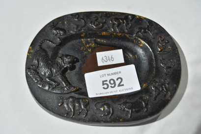 Lot Description:Oval form inkwell with Chinese zodiac themes of animals