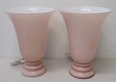 Lot Description:Pair large Italian pink glass table lamps