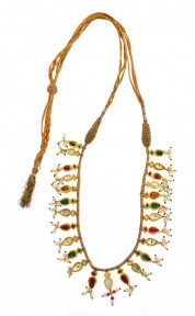 Lot Description:Indian Mughal Style 18 Carat Gold and Gem Set Necklace on Bullion Thread