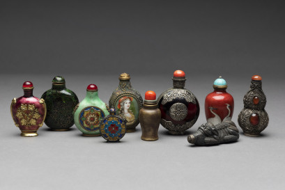 Lot Description:A varied group of ten enamel and metal mounted snuff bottles