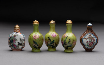 Lot Description:A collection of famille rose enamelled porcelain snuff bottles