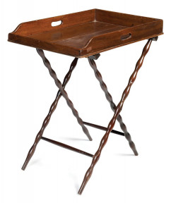 Lot Description:A mahogany butler's tray on turned folding stand, English 19th century