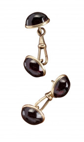 each set with red cabochon garnets. 14ct yellow gold. Weight 12.03 grams. Length 13mm. European hallmarks. -