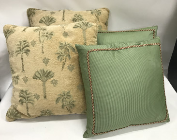 Lot Description:Two Pairs of Designer Cushions in Green Check & Palm Tree Fabric [4]