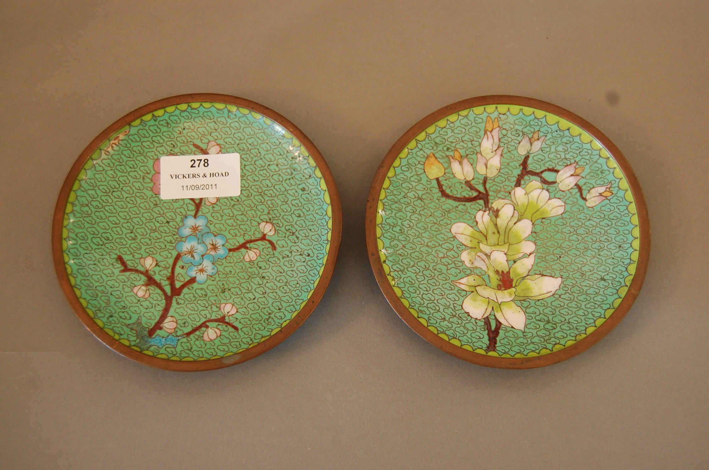 Lot #278 - Chinese pair of floral cloisonne dishes