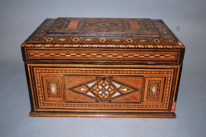 Lot Description:French box decorated in mother of pearl & bone inserts