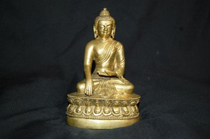 wearing flowing robes and bodhisattva ornaments and seated in the position of Royal ease on a double lotus base. Her right hand is in varada mudra (gesture of giving) H:12cm -