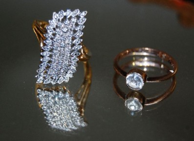 Lot #122 - Two 9ct yellow gold and rhinestones rings