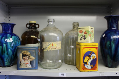 plus vintage style tins and 2 x hand made glazed vases -