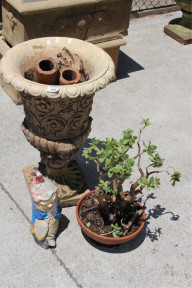 Lot Description:Vintage concrete style urn, vintage gnome AF