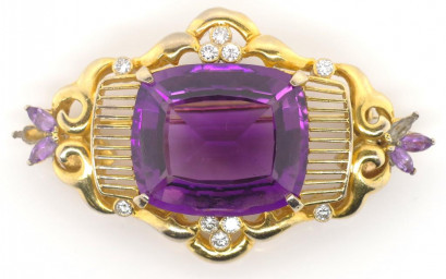Lot Description:18ct gold, amethyst, diamond and pearl necklace