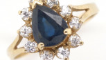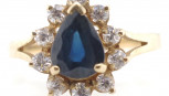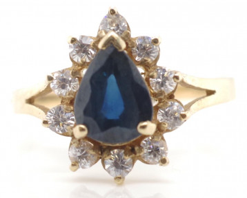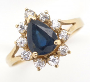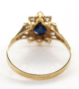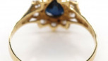 blue stone tests as corundum. Marked 375 approx ring size O, 1.9 grams weight -