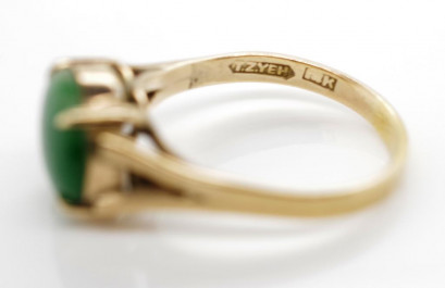 marked T.Zyeh 14k approx 2.6 weight, ring size L. Cabochon diameter 9.7mm -