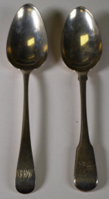Lot Description:Two sterling silver fiddle pattern soup spoons