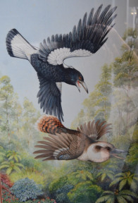 Lot Description:Charles Newman - 'Kookaburra and magpie in flight, 1986'