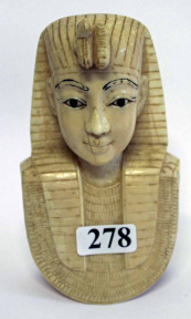of the Mask of Tutankhamun, with hieroglyphics to back. Height 12cm. -