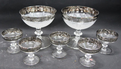 Lot Description:Two Glass Silver Rimmed Italian Compote Dishes With Five Matching Coups
