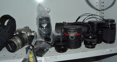 Nikon F65 camera and assorted lenses incl. Nikon, Canon, Yashica etc -