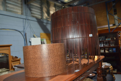 1 x alligator skin design, the other a large hanging light with cane strips -