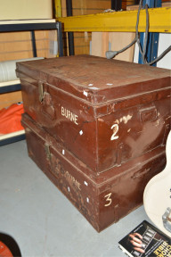 Lot Description:2 metal shipping trunks marked with the name 'Burne'