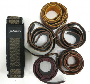 Lot Description:Five Leather Guitar Straps & a Onyx Guitar Strap
