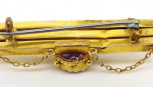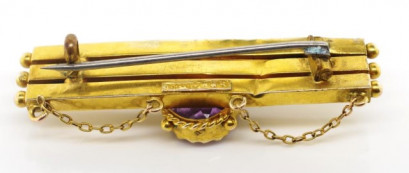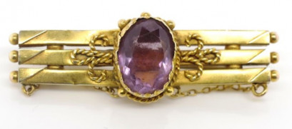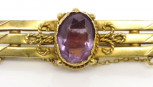 Lot Description:Antique 9ct yellow gold and amethyst brooch