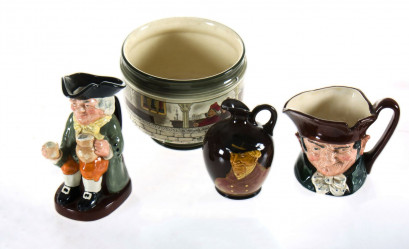 Incl. Dewars whiskey decanter; Old Charley & Happy John Toby jugs; & Jackdaw of Rheims deep bowl (hairlines)