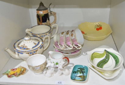 incl 3 vintage Japanese trios, Studio Anna Lord Howe Island dish, Crown Devon salad bowl, Grindley teapot and matching jug, beer stein, etc. -