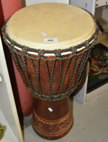 Lot #446 - Tribal drum with engraved detail