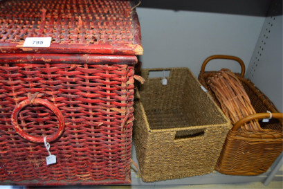 woven sea grass basket and 2 woven cane baskets -
