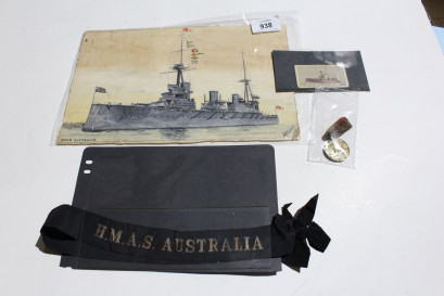 Lot #938 - Original HMAS Australia tallyband and artwork