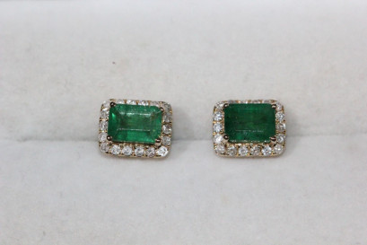 Lot Description:Pair of 14ct yellow gold emerald and diamond stud earrings