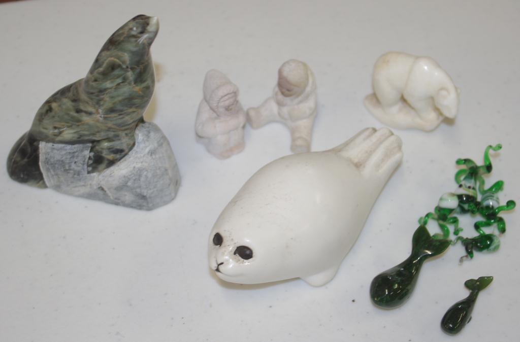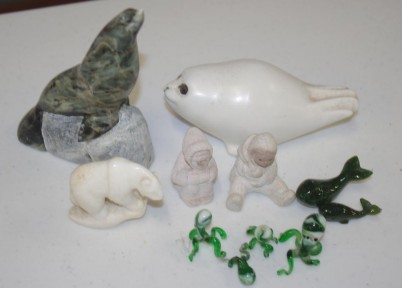 including seals, jade whales, glass octopus and two Eskimos -