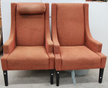 Lot #317 - A Pair of James Salmond Orange Upholstered Arm Chairs