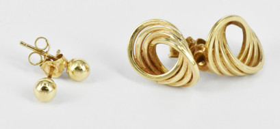 studs and knots, 9ct yellow gold. Weight 1.9g -