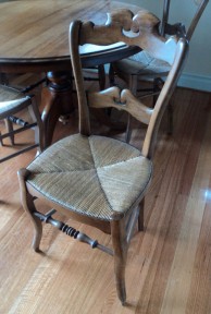 Lot Description:A set of six beech and rush seated dining chairs
