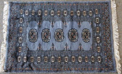 Lot Description:Tribal light blue ground wool rug