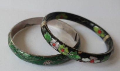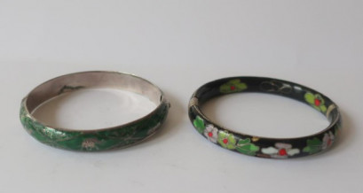 Lot Description:Vintage silver enamel bangles