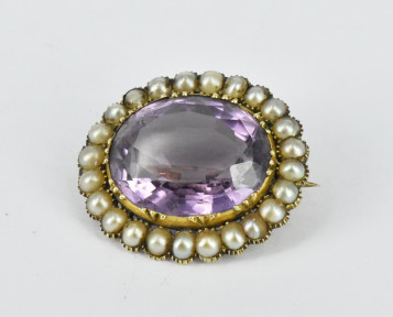 set with amethyst, set in 15ct yellow gold. Weight 7.1g. -