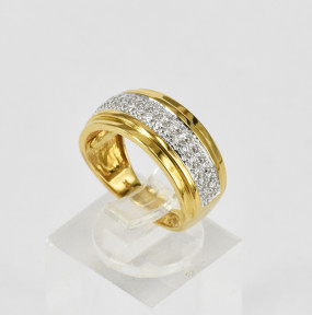 featuring two rows of brilliant cut diamonds of approx. 0.36ct in total, set in 18ct yellow and white gold. size N. Weight 6.2g. -