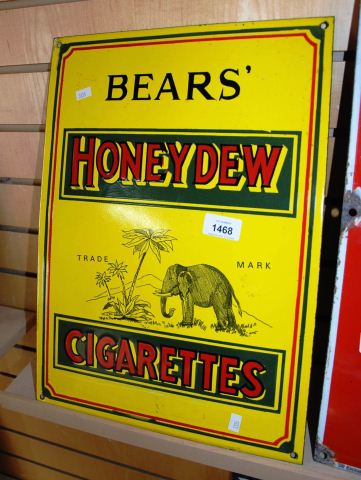 Lot #1468 - Enamel sign "Bears' Honeydew Cigarettes"