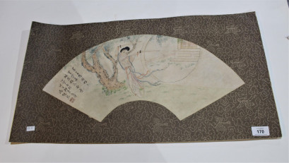 Lot #170 - Chinese fan shaped picture of a maiden