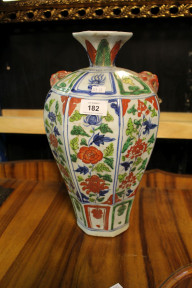 twin moulded handles, polychrome floral design, character marks to underside, 38.5cm T -