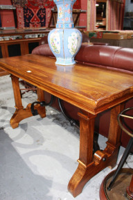 with cherrywood frame with wrought iron curved stretcher supports, 150cm W x 80cm T x 49.5cm D -