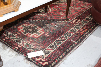 pure wool handmade, geometric design in red and black tones, note: AF, worn patches etc, 290 x 203cm -