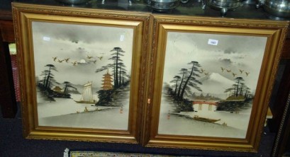 Lot #1597 - Pair of antique Japanese watercolours each with